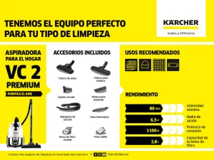 Cuenta con el filtro HEPA 13 integrado (acaba con un 99,95 % de polvo y partículas, además de proteger la salud). Retiene de forma fiable la suciedad más fina como, por ejemplo, polen y otras partículas alergénicas y deja un aire de salida limpio. Las bolsas de filtro son reutilizables (no requiere cambiar las costosas bolsas de filtro, lo cual protege el medio ambiente), pueden extraerse fácilmente y eliminarse sin suciedad. Los accesorios se guardan fácilmente en el equipo y por lo tanto están siempre a mano.