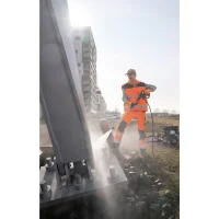 Obras, estacionamientos públicos y otros lugares de uso a menudo apartados: allí donde no haya fuentes de corriente externas y las tareas de limpieza sean exigentes, nuestra limpiadora de alta presión de agua fría HD 8/23 G Classic con motor de gasolina EU STAGE V es la opción perfecta. Con una cantidad de agua por hora de 800 litros, una presión de trabajo de 230 bar y una robusta bomba de cigüeñal, el equipo solventa las tareas de limpieza más exigentes con eficacia. Gracias a su asa de empuje ergonómica, el práctico almacenamiento de accesorios, sus dimensiones compactas y las ruedas a prueba de pinchazos, la HD 8/23 G Classic es muy cómoda de utilizar, móvil y además se puede transportar fácilmente en un vehículo. El equipo también destaca por la facilidad para acceder a sus componentes, eficazmente protegidos mediante un gran filtro de agua, una termoválvula y una válvula de seguridad. Con el fin de evitar daños por influencias externas, el equipo cuenta con un bastidor tubular de acero muy robusto.