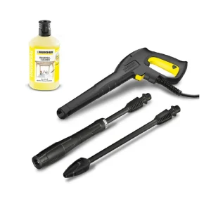La presión con la que sale el agua puede ajustarse a las necesidades de limpieza con un simple giro en la lanza. Y la boquilla rotativa ofrece un excelente resultado de limpieza al usarse sobre superficies resistentes que contengan suciedad fuertemente adherida. La manguera de alta presión se engancha y desengancha del equipo y de la pistola de manera rápida y cómoda, lo que ahorra tiempo y trabajo. El gancho del cable permite guardarlo confortablemente en el equipo. El filtro interno de agua protege a la bomba de alta presión contra las impurezas que tiene el agua, prolongando la vida útil de la bomba de alta presión.